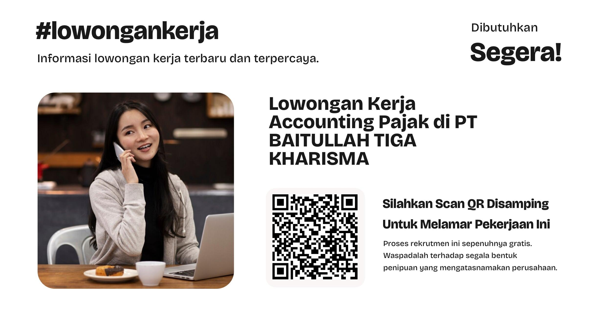 Kesempatan Berkarir: Accounting Pajak di PT. BAITULLAH TIGA KHARISMA PT. BAITULLAH TIGA KHARISMA, sebuah perusahaan yang berkembang di Kabupaten Sleman,