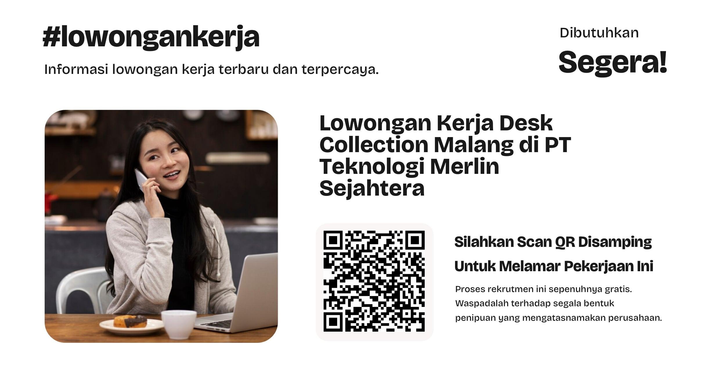 Bergabunglah sebagai Desk Collection Profesional di PT Teknologi Merlin Sejahtera – Malang! Apakah Anda individu yang proaktif, berorientasi pada target,