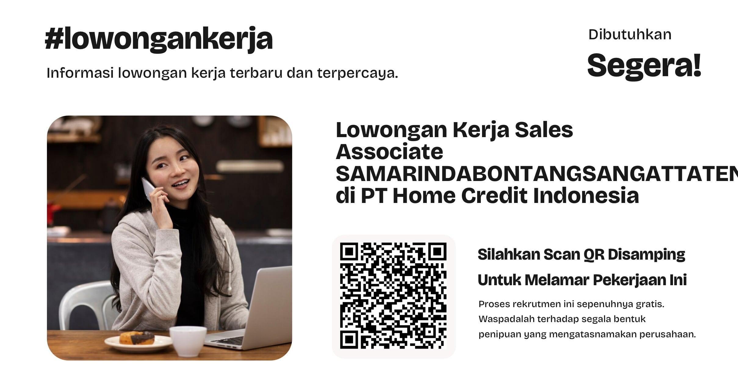Sales Associate (Full-Time) – Samarinda, Bontang, Sangatta, Tenggarong & Sekitarnya Bergabunglah dengan PT Home Credit Indonesia, sebuah perusahaan pembiayaan konsumen