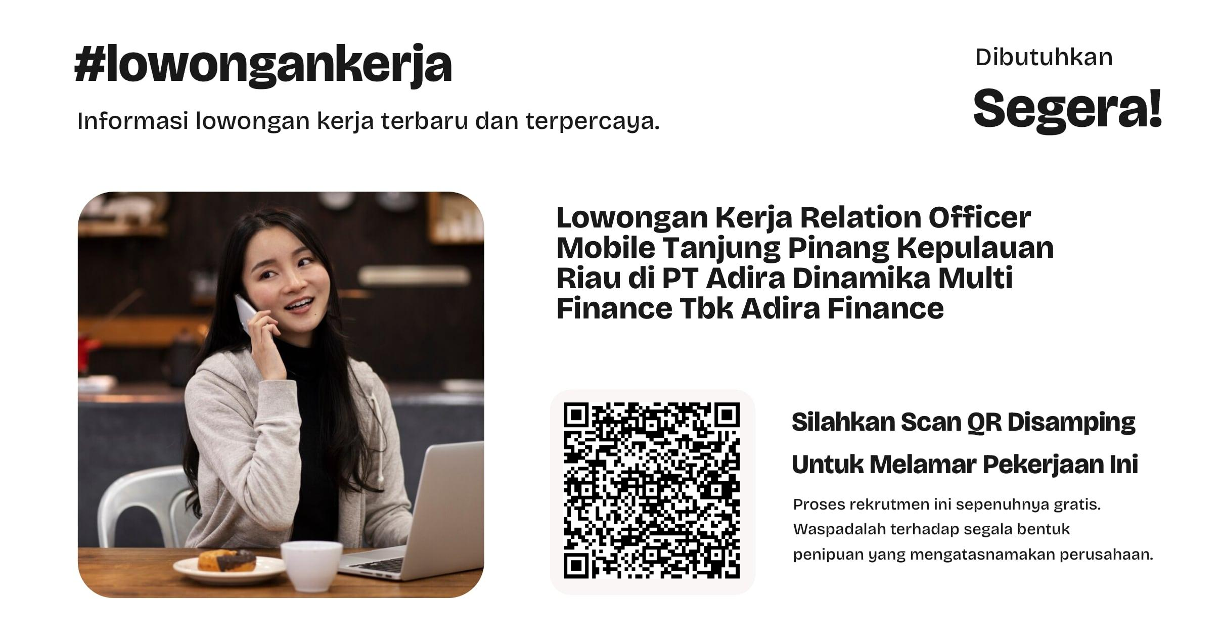 Relation Officer Mobile – Tanjung Pinang (Adira Finance) Bergabunglah dengan PT Adira Dinamika Multi Finance Tbk (Adira Finance), perusahaan pembiayaan